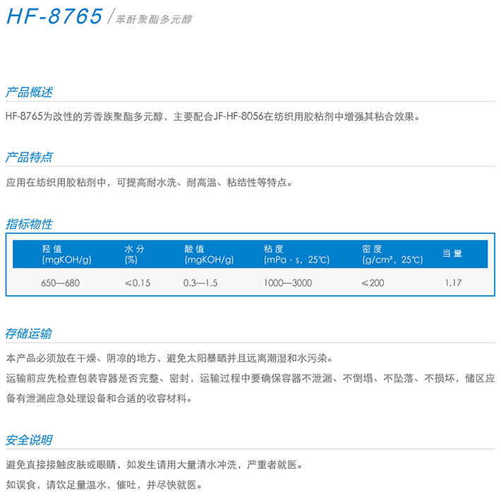 ZHEJIANGHUAFON NEW MATERIAIS CO.,LTD 浙江华峰新材料有限公司是全球聚氨酯原液主要生产企业,专业从事聚氨酯原液、聚氨酯制品原液和聚酯多元醇的开发、生产和销售,公司旗下“聚峰”牌聚氨酯原液被认定为浙江名牌产品、中国石油和化学工业知名品牌产品等称号。