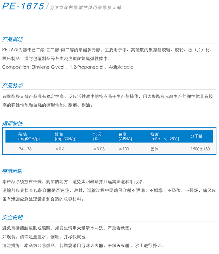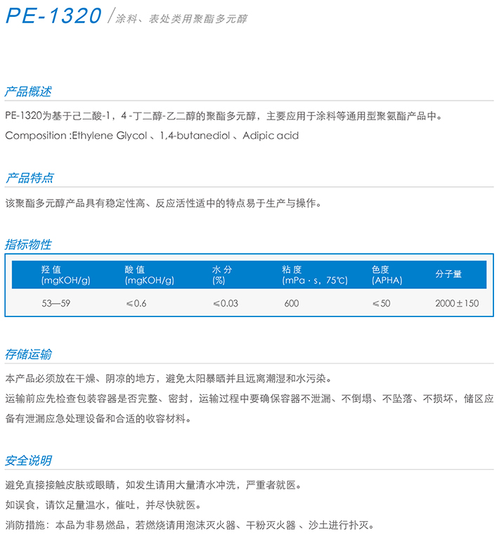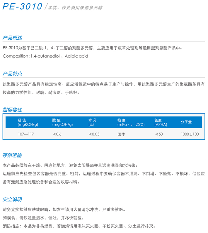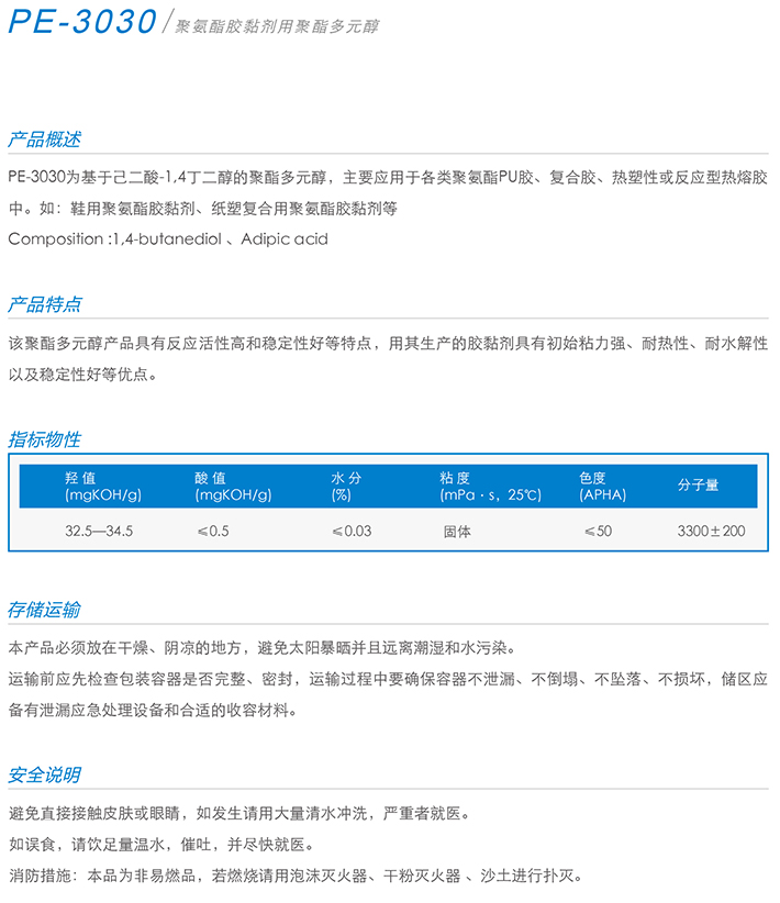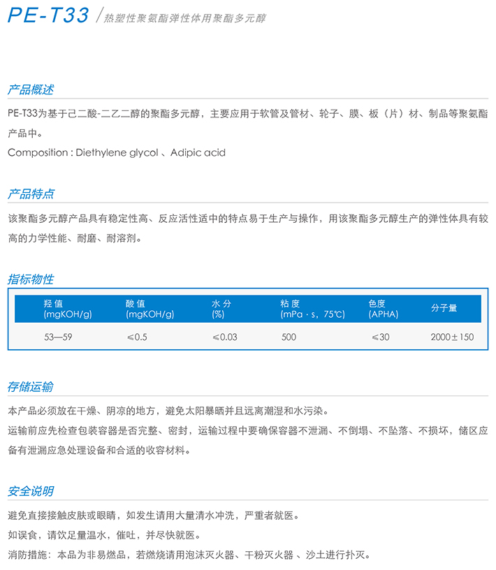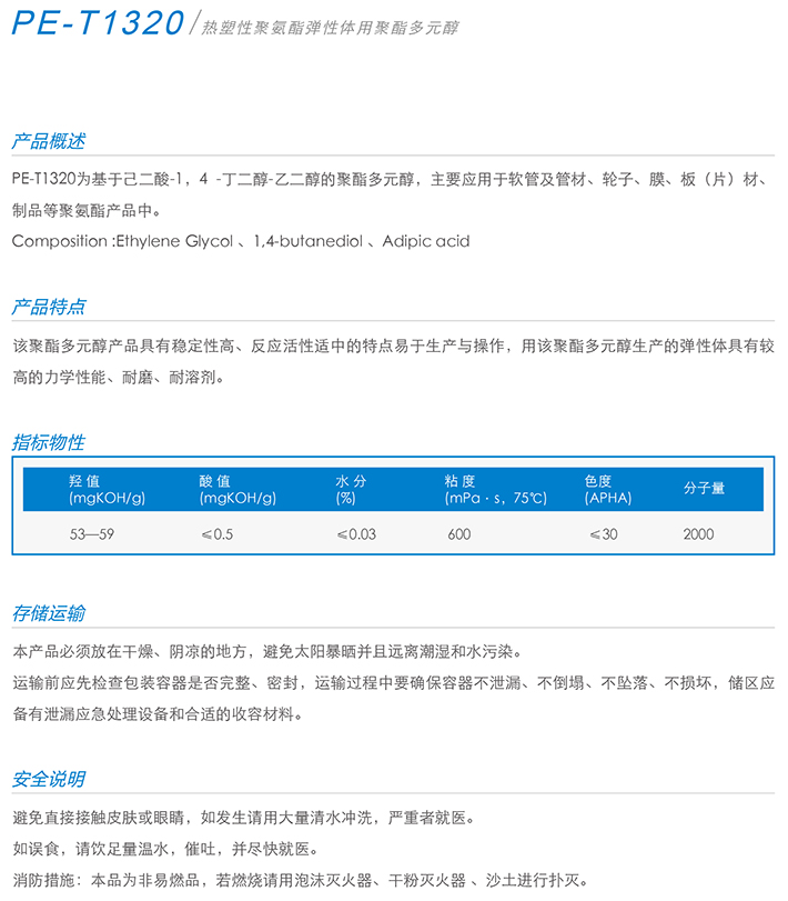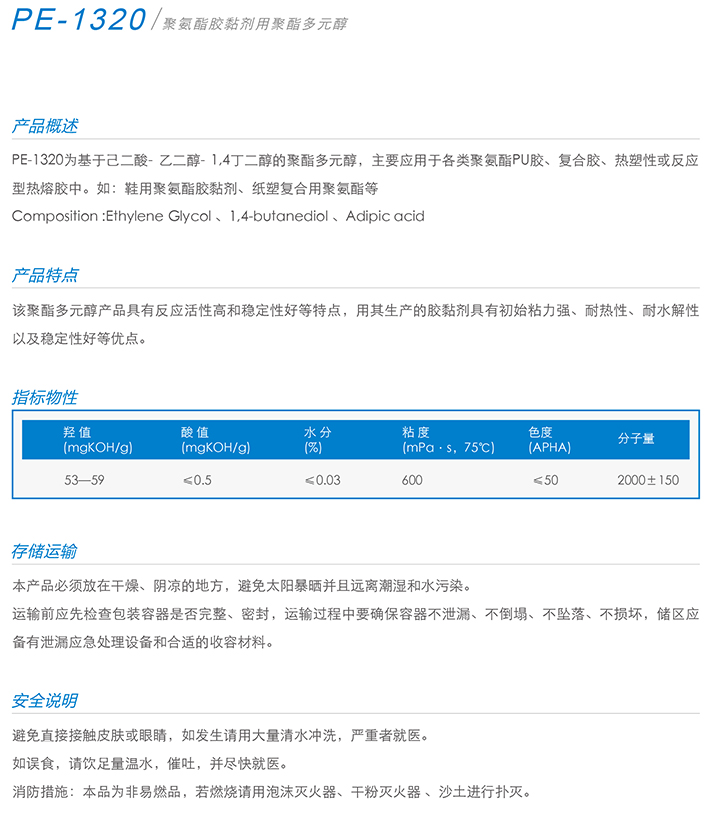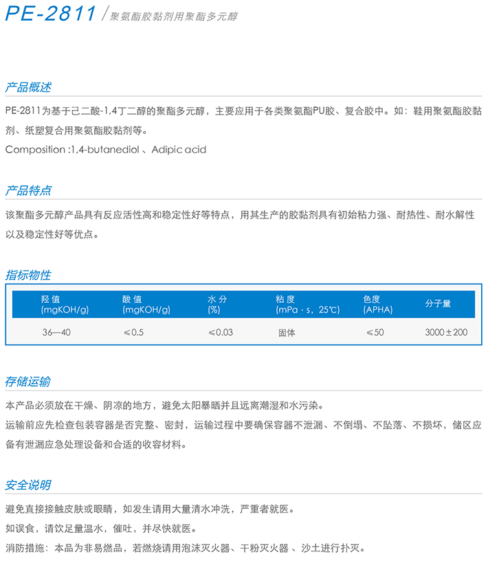 用作胶黏剂、弹性体、涂料、油墨、密封胶、革用树脂、鞋用树脂、TPU等产品的生产。